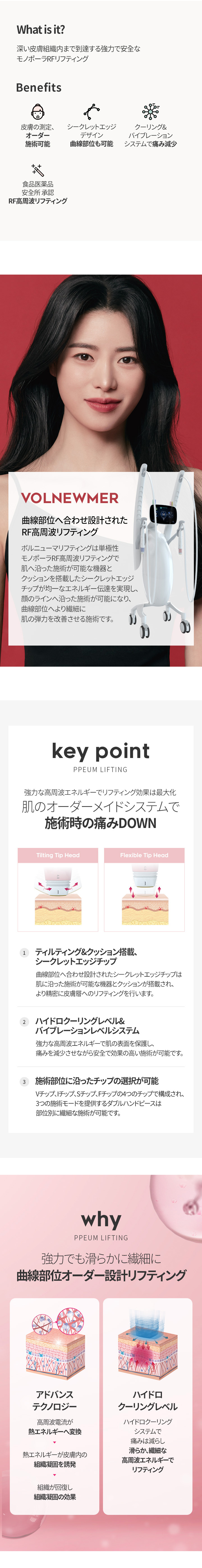 深い皮膚組織内まで到達する 強力で安全なモノポーラRFリフティング